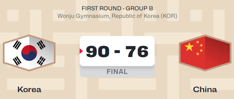 한국은 FIBA 랭킹 56위, 중국은 FIBA 랭킹 27위니까요.